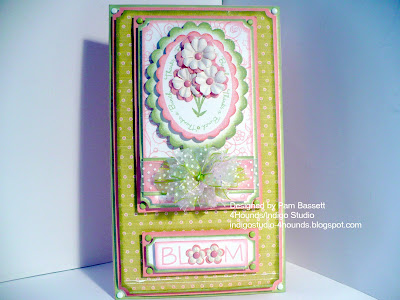 This card is made with a new set, 'Punch a Bunch', that will be released tomorrow, Wednesday, March 5th. I used some of my Prima stash to make the flowers in the main image piece, which is also punched out using the Marvy Giga punch--super-easy and fast! The DP is by Crate Paper, and is called 'Babydoll'. This creation is inspired by Kelly (emmiestamps on SCS)---her gallery is full of absolutely gorgeous creations, and I stalk her often! Thanks for looking----I hope you like it!